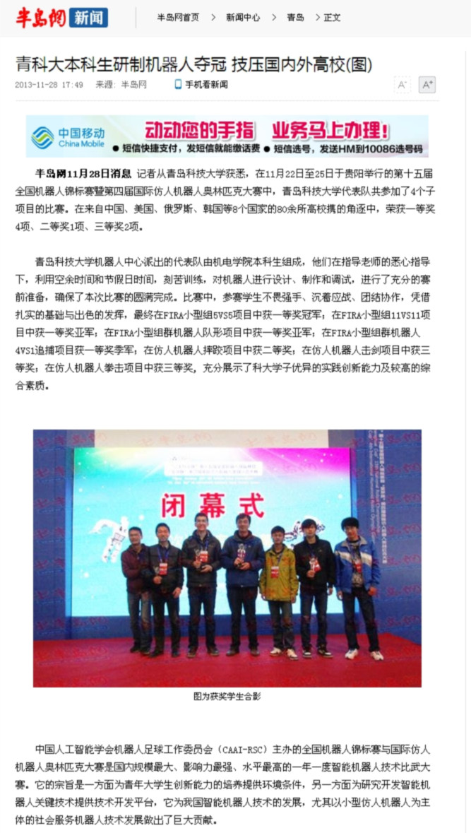 10月17-20日,由科技部高技术研究发展中心、中国自动化学会机器人竞赛工作委员会、RoboCup 中国委员会以及合肥市人民政府主办,合肥科技局和安徽建筑大学承办的2013中国机器人大赛暨RoboCup公…