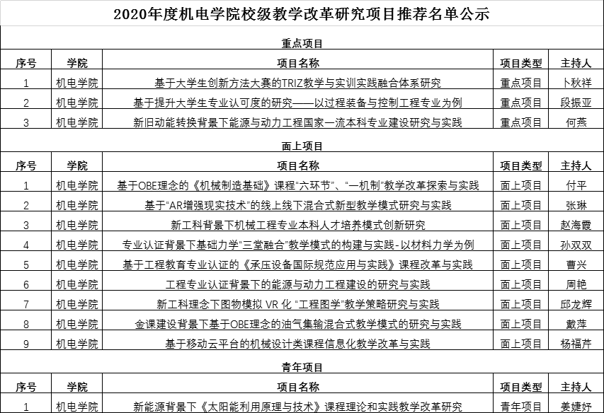 根据学校《关于开展2020年度校级本科教学改革研究项目立项申报暨2018年度校级教改项目结题工作的通知》要求,15vip太阳成集团开展了校级教改项目评审工作,经项目负责人申报,15vip太阳成集团评审,共通过验收准予结题10项(其中2项暑期提前结题),推荐新立项13项,现将结果公示如下: