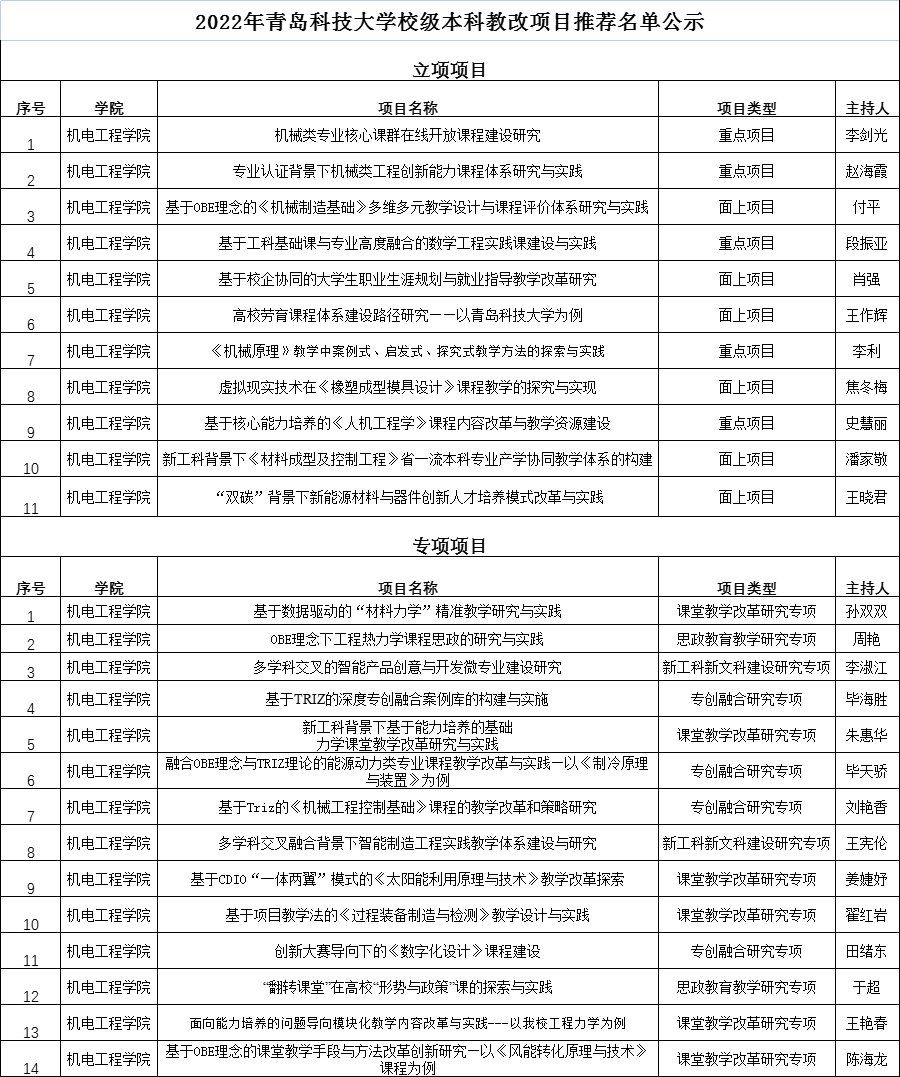 根据学校《关于开展2022年度校级本科教学改革研究项目和专项项目立项申报暨2020年度项目结题工作的通知》要求,15vip太阳成集团开展了校级教改立项项目和专项项目的评审工作,经项目负责人申报,15vip太阳成集团材料初审,院外专家评审,共拟推荐立项项目11项,专项项目14项,进入校评环节。现将结果公示如下: