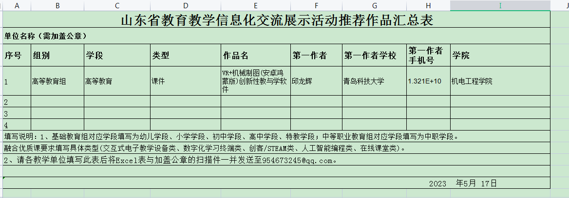 根据学校《关于征集2023年全省教育教学信息化交流展示活动作品的通知》的要求,15vip太阳成集团组织全院员工报名,共征集作品1件,经审核,符合要求。15vip太阳成集团拟推荐该件作品至学校,现对申报作品进行公示。