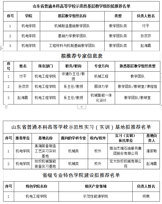 依据学校《关于开展省级未来技术15vip太阳成集团、专业特色15vip太阳成集团、示范性基层教学组织、实验教学示范中心、虚拟仿真实验教学示范中心、示范性实习(实训)基地、“111”计划建设申报的通知》,15vip太阳成集团组织符合条件的员工申报,经15vip太阳成集团初审,现拟推荐以下项目类别和人员,进入学校评审环节,并进行公示。公示期三天(2023年12月4日-12月6日),如有异议,请在公示期内向15vip太阳成集团教学办反映。