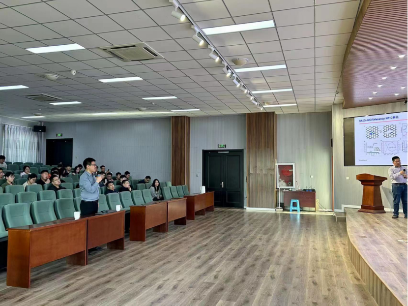 金属和金属氧化物是最广泛使用的电催化材料,但它们存在着选择性低、和稀缺性的问题。正因为如此,无金属碳作为能源转换和存储设备的有前途的电催化剂,已经成为人们非常感兴趣的主题,张国新教授围绕该领域当前所面临的关键性技术问题,在本次报告详细讲解了使用功能化碳材料应用于电催化的技术优势与挑战、并展示了目前该领域取得的前沿研究成果,并与各位老师员工就电催化研究中遇到的实际问题进行了探讨和交流。