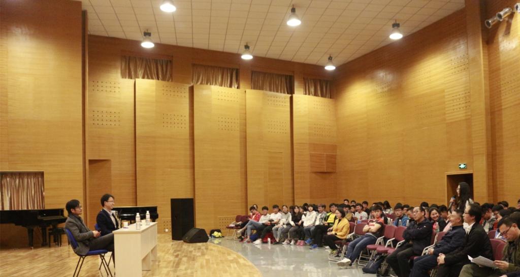 会上,张长晓首先回顾了在母校学习期间的人文趣事,汇报了走出母校后在意大利取得的成绩,分享了自己的奋斗历程。随后对中国摇滚乐、意大利民谣流行音乐进行简单介绍,重点讲述了国内外音乐进展和差异、中意音乐交流等方面情况。会后,张长晓与师生们进行互动交流,耐心解答的大家提出的问题。