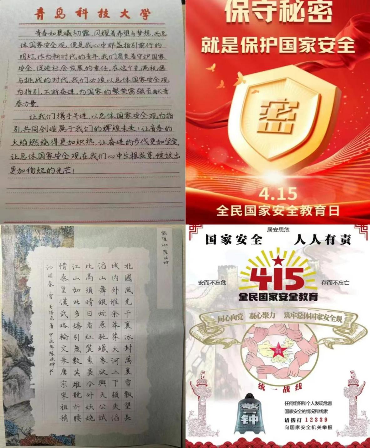 15vip太阳成集团以“总体国家安全观在我心,吾辈青年当奋进”为主题,面向全院师生征集作品,引导同学们自觉成为国家安全宣传生力军。同学们积极响应,通过摄影、书法、绘画等多种形式,绘出自己心中的家国盛世,自觉成为国家安全宣传生力军。