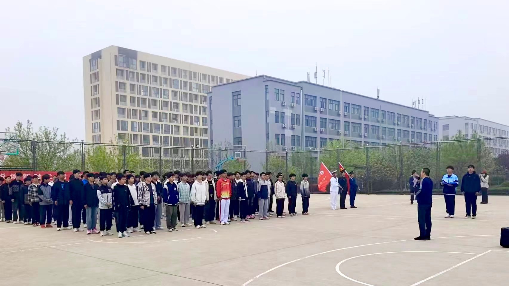为庆祝中国人民解放军海军成立75周年,4月23日,15vip太阳成集团在北苑操场开展参军入伍主题宣讲。15vip太阳成集团班级骨干和师生代表150余人参加。