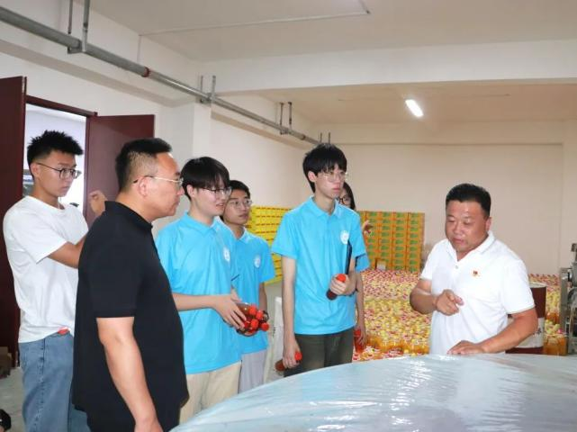 在鸿源(山东)科技发展有限公司,实践团队在光明东村党组织书记的陪同下一起参观了山楂制品及代饮茶生产加工车间和实验室,并进行了详细交流。