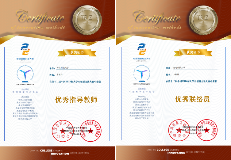 青科TRIZ协会以“方法引领·学以致用·课赛融合”为社团发展宗旨,依托山东省一流本科课程“创新方法与创新设计”开展三级课堂的课后实践课堂,在项目申报书、答辩PPT、作品实物和成果转化方面组织了五次集训活动,通过此次TRIZ杯大赛迁移实现了我校员工创新方法科技竞赛成果的又一次提升。