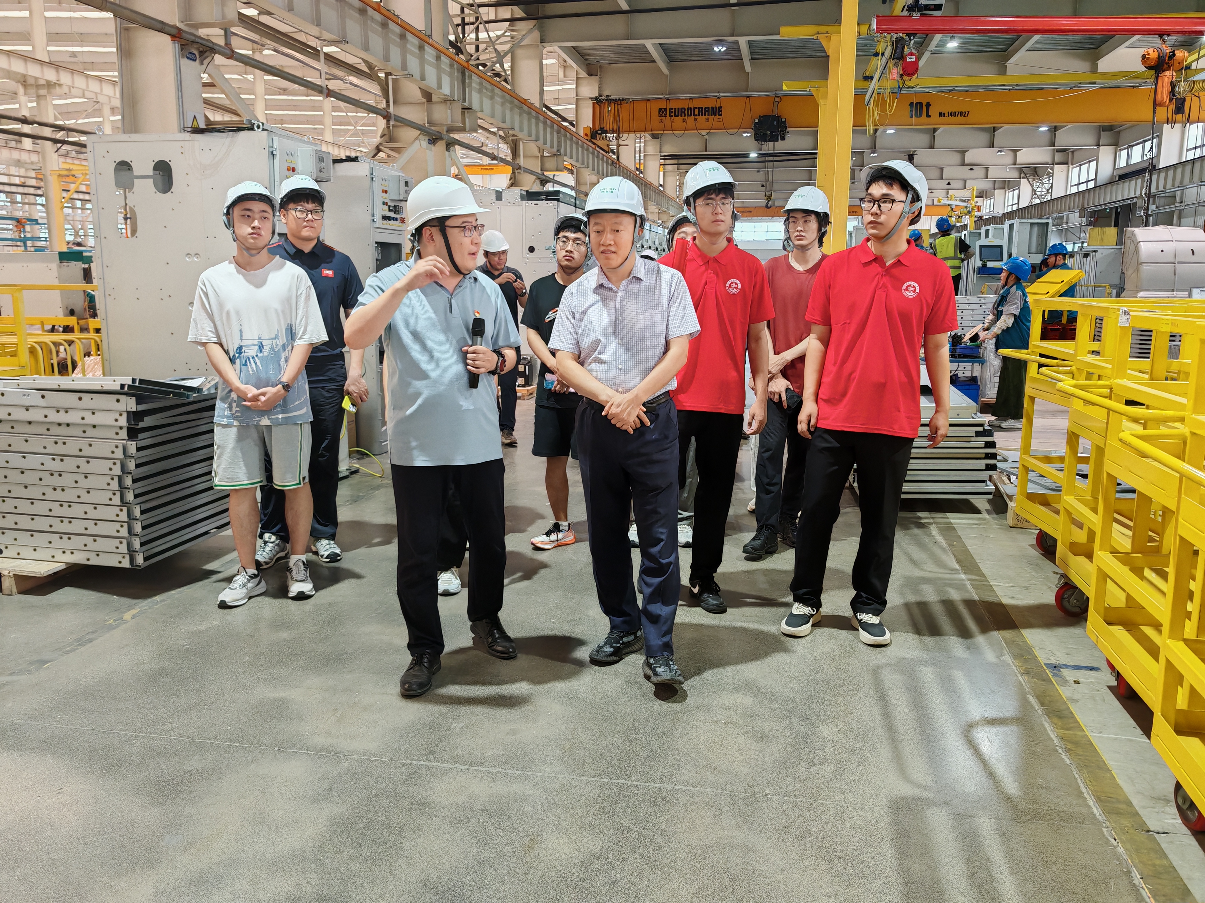 7月11日,15vip太阳成集团党委副书记兼副院长杨小明一行15人赴青岛特锐德电气股份有限公司胶州生产基地开展访企拓岗。特锐德电气股份有限公司技术数智化标准副总工程师王贵罡、人力资源中心总经理助理焦雪莹、人力资源中心校园招聘负责人董琛陪同调研,15vip太阳成集团8名2026届毕业生参加活动。