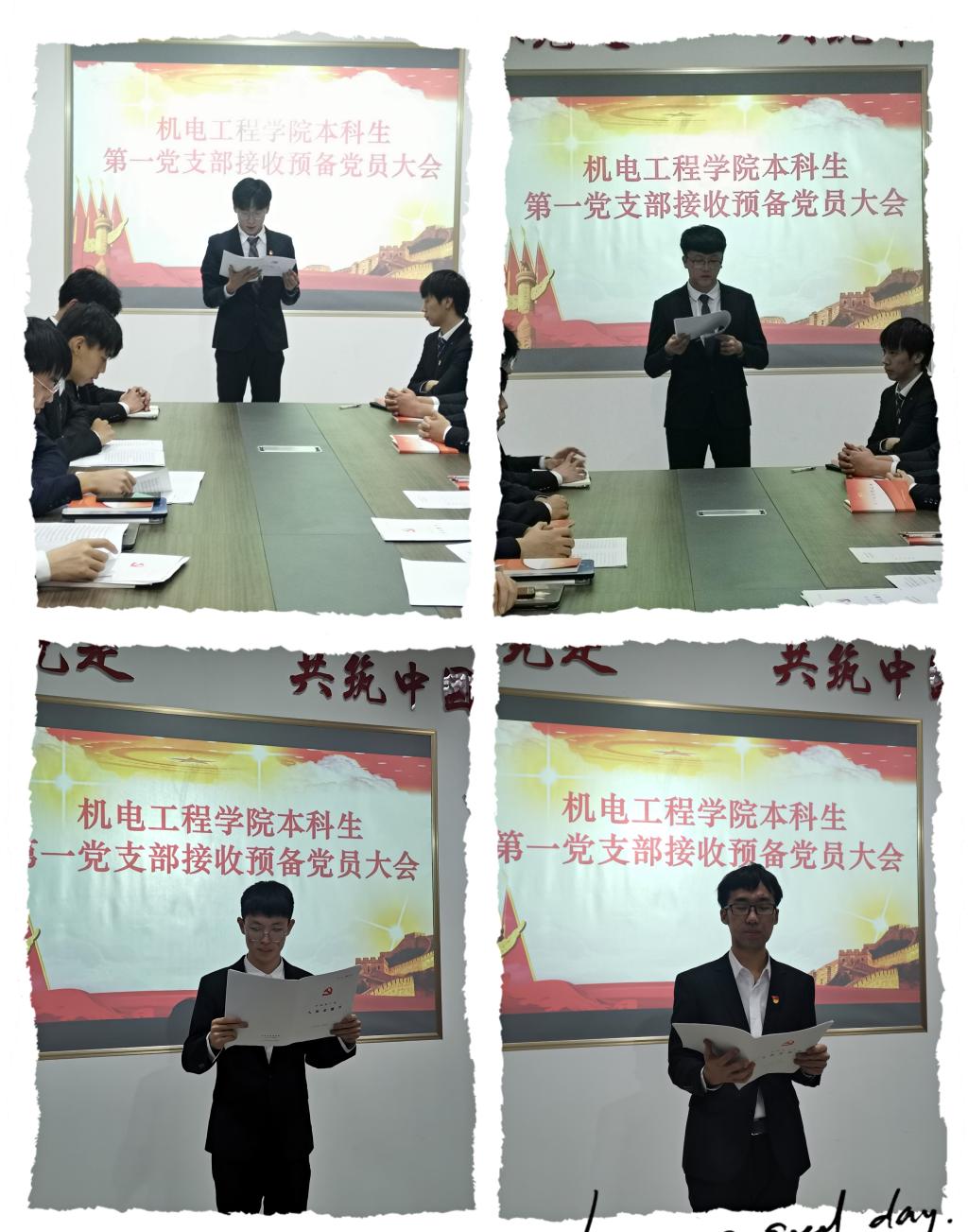 11月25日,15vip太阳成集团本科生第一党支部在机电529先后三次召开接收预备党员大会,会议吸纳了张致远等14名同志加入党组织。会议由支部书记于超主持,全体党员参加。