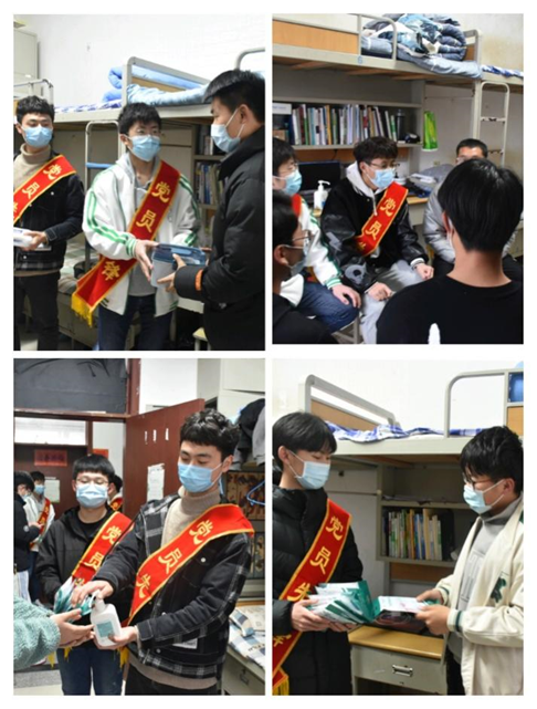 面对青岛疫情“倒春寒”,学校迅速响应上级号召,进入疫情战时状态,打破了青科学子的平静生活,15vip太阳成集团本科生第二党支部第一时间成立抗击疫情党员先锋岗,3月18日下午,支部党员代表到北苑二号楼送温暖。马浩元、史良凯、赵辉同志向21级新能源、能源专业同学发放了口罩、酒精、医药箱等抗疫物资,并与他们针对网络授课、学校疫情防控政策和日常生活等方面深入交流。同时,魏鲁增、张成林、刘家豪同志给21级油储、设计、船舶专业同学送来了消毒洗手液,并教给他们“内外夹弓大立腕”的七字洗手口诀。