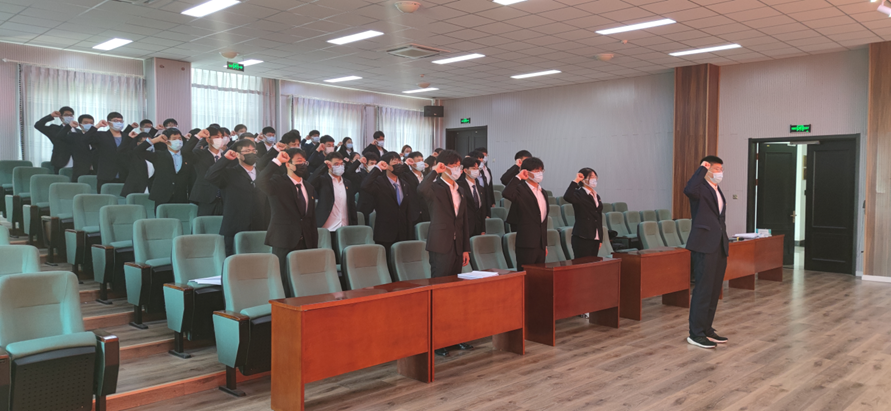会议最后,在隋哲文同志的领誓下,全体党员同志举起右手,庄严宣誓。