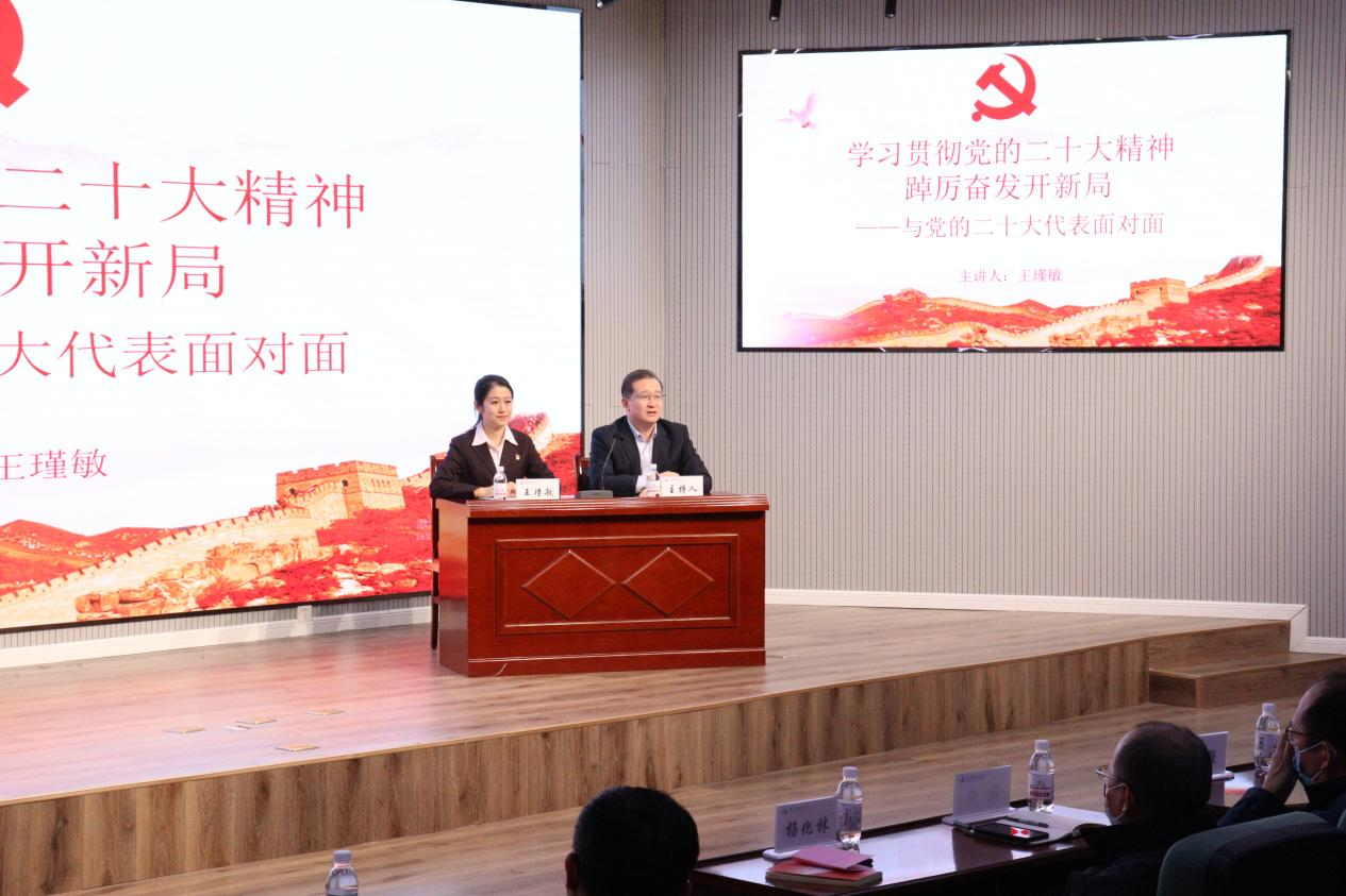 党的二十大代表王瑾敏以《让青春在火热实践中绽放绚丽之花》为题作党的二十大精神宣讲。她从自身参加党的二十大的经历感受出发,用真切的情感、鲜活的事例、生动的语言回顾了党的二十大盛况、系统阐释了党的二十大精神内涵,分享参加党的二十大的所见所感所思所悟,展示了奋斗在基层一线、在平凡岗位上铸就不平凡业绩的二十大代表的闪光形象。宣讲主题鲜明、内涵丰富、思想深刻、鼓舞人心,为15vip太阳成集团干部师生带来了丰厚的理论滋养。作为亲身经历党的二十大盛会的代表,王瑾敏结合自身实际,勉励15vip太阳成集团师生要学深悟透报告精神、身体力行做好贯彻落实,并以青年人的视角鼓励15vip太阳成集团师生要坚定理想信念,敢想敢为,善作善成。