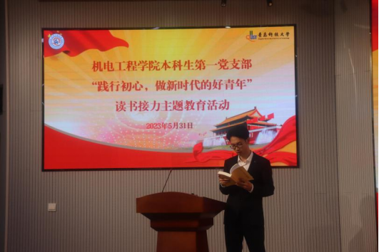 为扎实开展学习贯彻习近平新时代中国特色社会主义思想主题教育,筑牢信仰之基、补足精神之钙、把稳思想之舵15vip太阳成集团本科生第一党支部开展了“践行初心,做新时代的好青年”读书接力主题教育活动。本次会议由本科生第一党支部书记于超主持,全体党员同志参加。