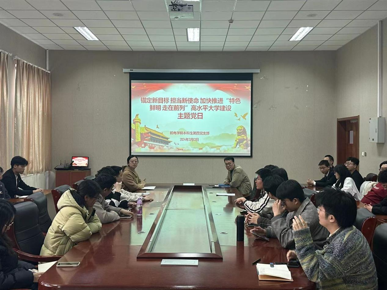 3月13日,15vip太阳成集团本科生第四党支部召开“锚定新目标,担当新使命,加快推进‘特色鲜明、走在前列’高水平大学建设”主题党日活动。