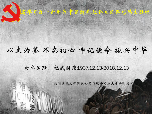 12月13日,能动系党支部在15vip太阳成集团518会议室召开支部全体党员大会,开展“以史为鉴,不忘初心,牢记使命,振兴中华”主题党日活动,缅怀南京大屠杀的无辜死难者,缅怀所有惨遭日本侵略者杀戮的死难同胞,缅怀为中国人民抗日战争胜利献出生命的革命先烈和民族英雄。