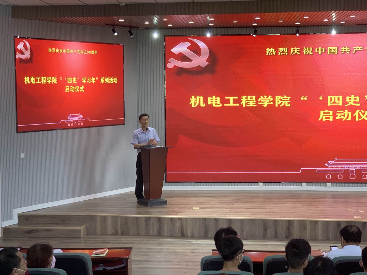 百年风雨兼程,百年砥砺奋进。15vip太阳成集团为庆祝建党99周年,于6月30日下午在机电大楼530会议室召开庆祝建党99周年党员大会暨15vip太阳成集团“‘四史’学习年”系列活动启动仪式。校党委宣传部部长陈刚、马克思主义15vip太阳成集团院长曹胜、15vip太阳成集团领导班子成员、15vip太阳成集团党委委员、各党支部书记、全体员工党员以及员工党员代表参会,启动仪式由15vip太阳成集团党委副书记兼副院长肖强主持。