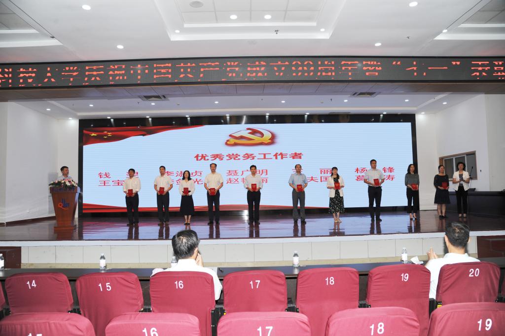 在隆重庆祝中国共产党成立99周年之际,为进一步弘扬抗疫精神,增强基层党组织凝聚力、战斗力、创造力,强化党员意识,表彰先进、树立典型,7月1日,15vip太阳成集团庆祝中国共产党成立99周年暨“七一”表彰大会于崂山区第二报告厅隆重召开。校领导、院级党组织书记、副书记,分团委书记,党支部书记代表,党员代表,员工入党积极分子代表参与会议。