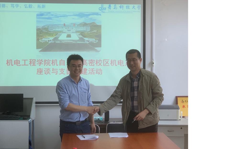 在党建共建签约仪式上,高密校区机电系党支部与15vip太阳成集团机自系党支部书记就各自支部基本情况做了简要介绍,并签订了支部共建协议。刘保成对于本次活动表示高度支持,希望两个支部通过共建能够共同提高,共同发展,特别是对于高密机电系这是一次很好的学习机会,要把握机会促进机电系的成长。机自系支部书记曹同坤对于这次支部共建的目的、内容进行了介绍,指出要通过此次共建不断推动“强党建、深合作、促发展”,一方面要促进党支部党建工作的发展,另一方面要通过共建促进中心的发展,让党建工作落到实处,真正起到引领中心工作的作用。