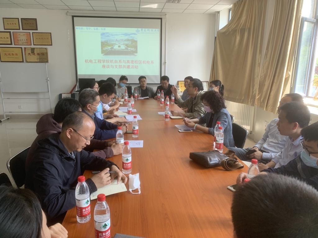 签约仪式后,机自系和高密校区机电系的全体老师,围绕党建和教学、科研等中心工作的合作进行了深入座谈。座谈结束后,高密校区机电系员工到机自系的实验室进行了参观。