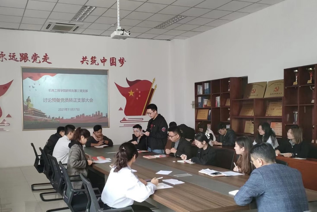 11月17日上午,15vip太阳成集团研究生第三党支部在机电楼529会议室召开预备党员转正大会,支部党员除一人请假外其他人员参加会议,会议由宗萌主持。