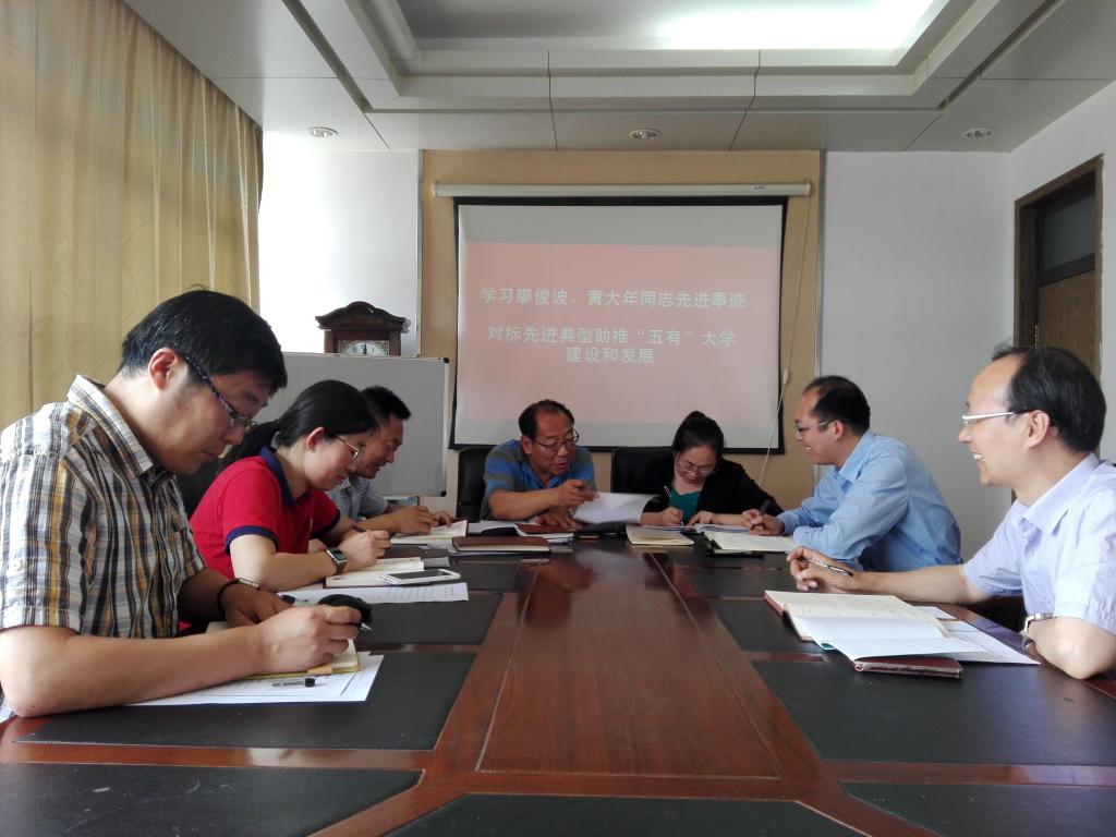 中心组集中学习了廖俊波和黄大年同志的先进事迹。孙立军提出要学习先进事迹,对标先进典型,助推“五有”大学的建设和发展,一是在思想上对标,学习他们坚定信念、对党忠诚的政治品格,凝聚15vip太阳成集团改革发展动力;二是在发展上对标,学习他们敢于担当、锐意进取的实干精神,发挥党员干部主力军作用;三是在服务上对标,学习他们心系群众、造福一方的为民情怀,切实履行15vip太阳成集团的责任担当;四是在作风上对标,学习他们无私奉献、克己奉公的清廉本色,打造风清气正的政治生态。
