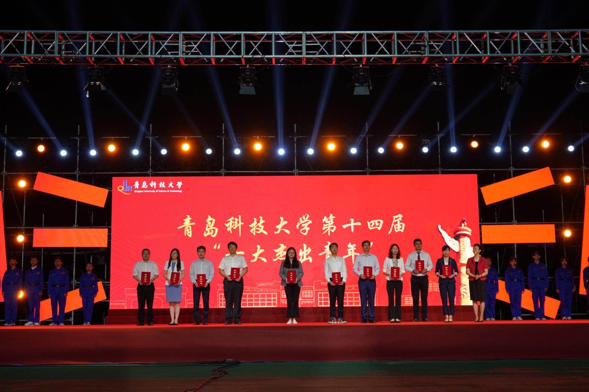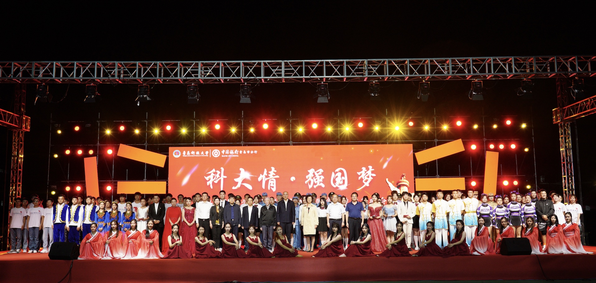 9月28至29日,“科大情·强国梦”2021年迎新生庆国庆师生文艺晚会分别在四方校区西礼堂和崂山校区体育场隆重举行。晚会开始前,党委书记马连湘向全体2021级新生表示欢迎和问候,向受表彰员工典型表示祝贺。校长陈克正,中国工程院院士、学校电工材料研究院院长雷清泉,学校党政领导班子成员张淑华、姚锋、李勇、吕万翔、丁林、聂法良、陈刚、张洪坤,中国银行青岛分行团委书记谭丽娜出席晚会。
