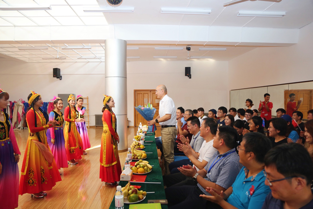 当天下午,陈克正一行来到四方校区“感党恩、庆国庆、民族团结一家亲”新疆籍少数民族员工座谈联欢会现场,与师生一起庆祝新中国72周年华诞。陈克正观看了少数民族员工带来的民族舞《民族大团结》、诗朗诵《信念永不褪色》等特色节目,对国庆假期留校的少数民族员工送上节日的问候和美好的祝福。