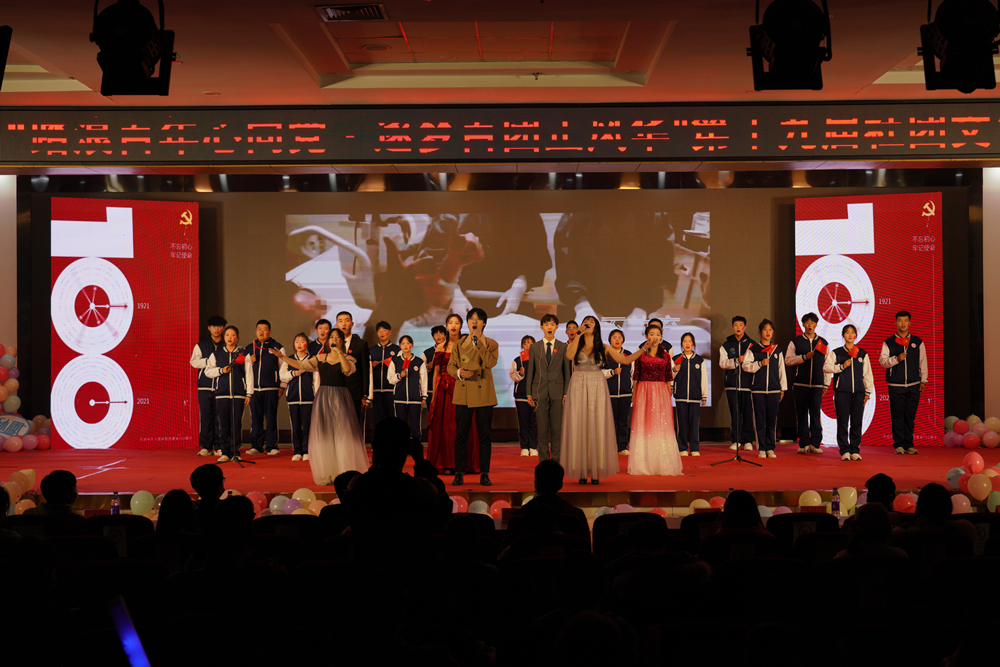 展演在V-show体育舞蹈社团带来的开场舞《dancing blow》中拉开序幕,青春洋溢的舞蹈绽放“活力青科大”之美。第一篇章《社团情·强科大》,青尘义工队和金声音乐剧协会用朗诵、歌唱相融合的形式,表演《祖国不会忘记》,“唱响”了广大青科学子踏上第二个百年新征程、为中华民族伟大复兴中国梦贡献智慧力量的青春赞歌;青稞动漫社和青音吉他协会带来的舞蹈《DoMo Starry Night》《新青年》将青春的韵律传递给每一位青年员工,引领青年学子争做助力学校高质量发展的“新青年”;红十字员工分会的情景剧《破晓》和影子舞《百年奋进中国梦》,以“情景再现”的模式带领广大青年学子回顾中国共产党的百年峥嵘岁月和历史征程,诉说“永远跟党走·青春献祖国”的青春誓言。