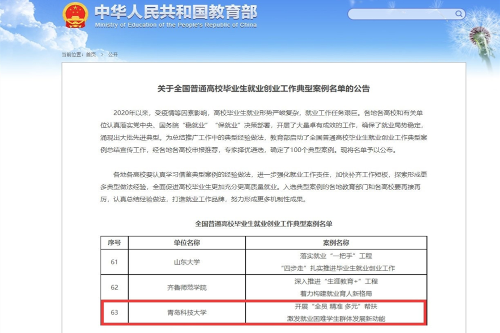 四、学校入选全国100个普通高校毕业生就业创业工作典型案例