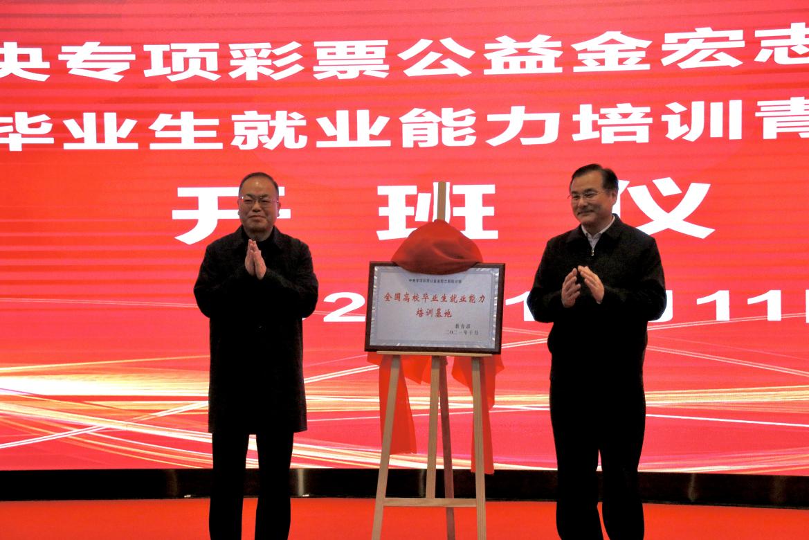 12月11日,教育部、财政部“中央专项彩票公益金宏志助航计划全国高校毕业生就业能力培训基地”揭牌仪式暨首期培训开班在崂山校区第三报告厅隆重举行。党委常委、副校长丁林,党委常委、宣传部部长陈刚出席仪式。校内外授课专家代表、首期参训毕业生代表参加了活动。丁林、陈刚为“全国高校毕业生就业能力培训基地”揭牌,丁林为来自歌尔股份、华为慧通、泰凯英轮胎、上海赴外交流中心、青岛智慧湾、诗迈医药、华夏基石、英科股份等名优企业和学校选聘的校内授课专家讲师颁发聘书。学校将以基地的建设与运营为契机,进一步提升毕业生就业创业工作水平,不断推动学科专业布局优化、教育教学改革、就业服务能力提升“协同融合”,持续推动毕业生就业创业内涵式高质量发展,提升员工获得感和幸福感,着力打造具有青科大特色的“一体两翼三化”就业创业工作模式。