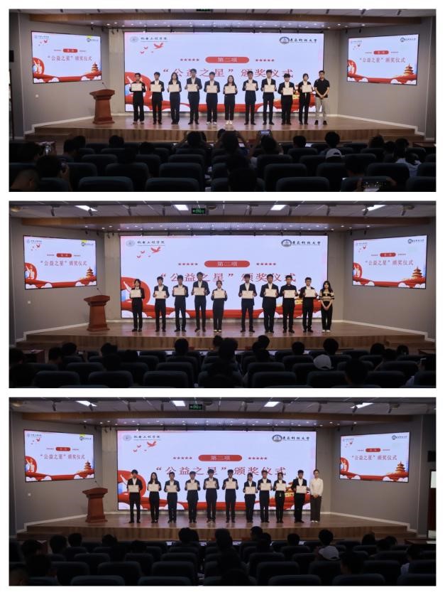 大会第二项,“公益之星”颁奖仪式。根据学年例会参会情况、志愿活动参与情况、志愿服务时长情况、协会内部工作情况等指标,最终评选出30名“公益之星”。