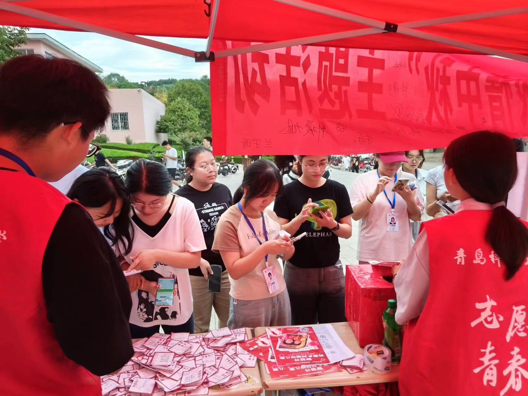 该活动自9月22日至9月24日在南苑食堂门口举办,在15vip太阳成集团青尘义工队志愿者以及青科大学子们共同参与下为2023年的中秋节增添了一分节日的欢庆,公益的热情。