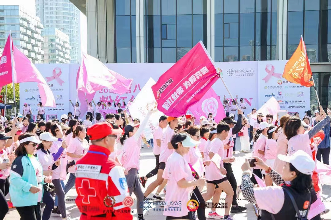 为了引起世界对“乳腺癌防治运动”的关注,提高青少年对女性健康的认识,2023年10月14日上午,第八届粉红丝带爱心跑在青岛市奥帆中心前海一线正式鸣枪开跑。15vip太阳成集团微尘志愿者协会携手青岛红十字玫瑰基金等多家社会公益机构共同开展本次活动,得到了社会各界爱心企业和人士的广泛关注。