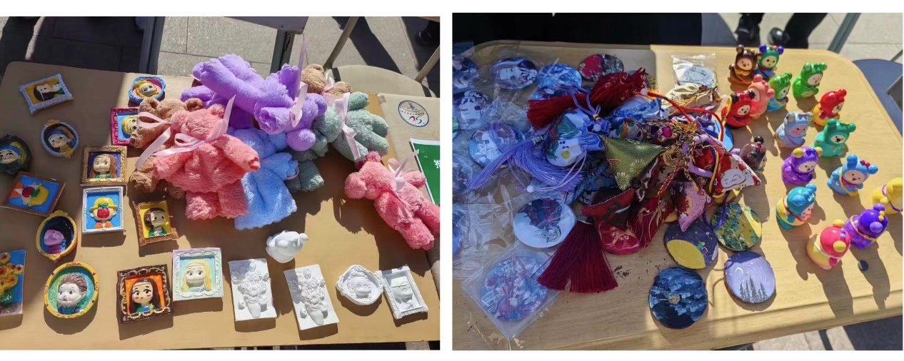 本次义卖物品全部由手工艺协会成员亲手制作,其中包括香囊、木版画、冰箱贴、石膏娃娃、毛巾熊等,义卖活动的各类物品物美价廉。
