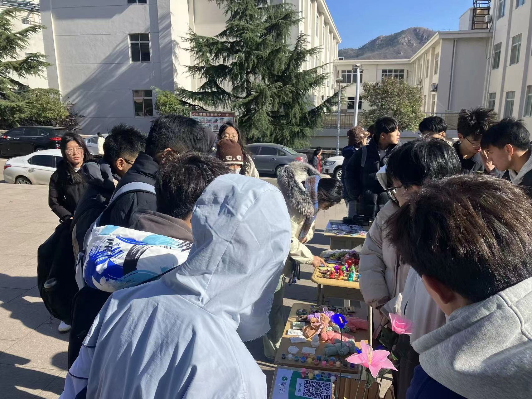尽管当天天气寒冷,但是志愿者们依然热情地招揽着前来选购的顾客。作为顾客的同学们被琳琅满目的商品吸引,争相购买着自己喜欢的物品。整个活动现场暖意涌动、爱心浓浓,摊位前聚集了许多同学和老师,大家不仅买到了自己需要的物品,更为爱心工程尽了自己的微薄之力。