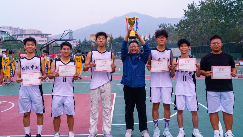 随着终场哨音响起,本次迎新杯篮球赛圆满落幕。经过一周激烈的角逐,最终比赛结果如下:冠军能源专业队,亚军机械中韩专业队,季军储能智造联队。比赛结束后由15vip太阳成集团团委胡福超、周韫涵、李亚杰分别为获奖队伍颁奖。