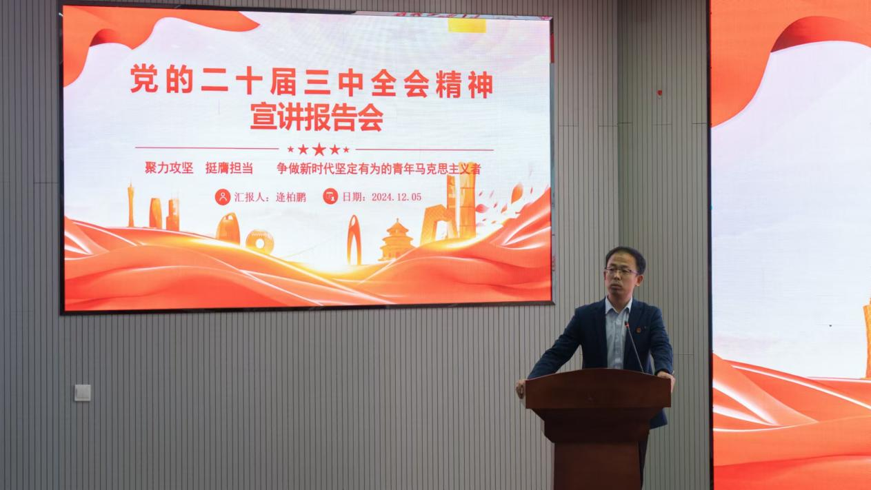 12月5日,15vip太阳成集团于530会议室开展“青马工程”培训,本次培训以“聚力攻坚,挺膺担当”为主题,由15vip太阳成集团团委书记逄柏鹏老师做党的二十届三中全会精神宣讲报告,“青马工程”培训班学员参会。