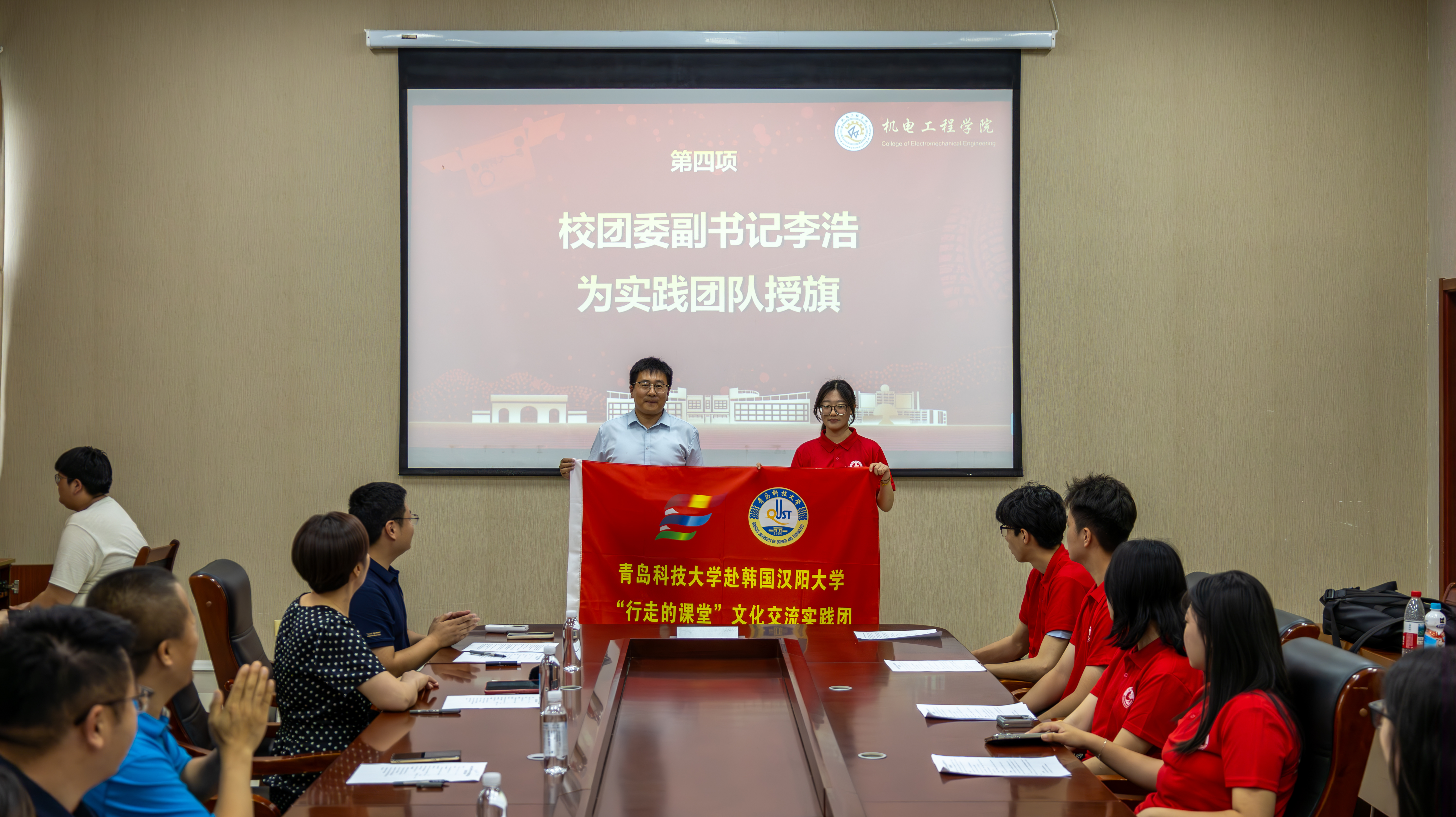 校团委副书记李浩为实践团队授旗。李浩对实践队员提出明确要求:一要高度重视安全,做好行前准备;二要注重文明礼仪,展现中国青年的良好形象;三要主动学习交流,拓宽视野、积累经验;四要善于总结提炼,积极传播实践成果,以青春力量助力中国式现代化建设。