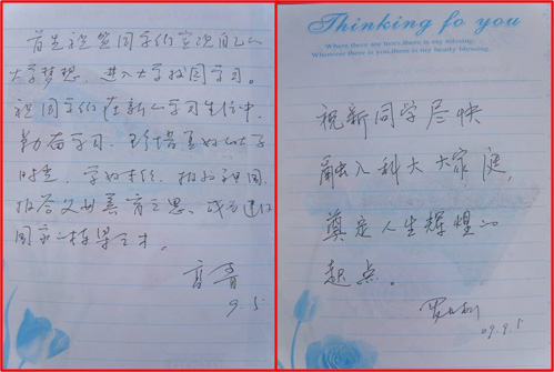 高青书记在对新生的寄语中写道:“首先祝福同学们实现自己的大学梦想,进入大学校园学习。祝同学们在新的学习生活中勤奋学习,珍惜美好的大学时光,学好本领,报效祖国,报答父母养育之恩,成为建设国家栋梁之才。”罗公利校长在留言中祝愿新生尽快融入科大大家庭,奠定人生辉煌的起点。李勇处长在寄语中祝愿2009级新生在科大成就梦想。刘传华书记在对新生的留言中写道:“传承科大精神,践行橡胶品格,祝2009级新同学同科大一同成长,越飞越高。”陈建国老师在走访15vip太阳成集团迎新工作时也为机电的新生们留下了寄语,陈老师鼓励新生们认真学习,不断努力,在大学毕业时站上一个新的高点。