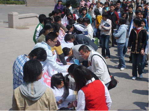 4月9日中午,15vip太阳成集团在东部校区餐厅东门举行了大型横幅签名活动。这次活动旨在号召科大师生以饱满的热情积极配合学校做好评估工作,自觉参与评估有关的各项活动。