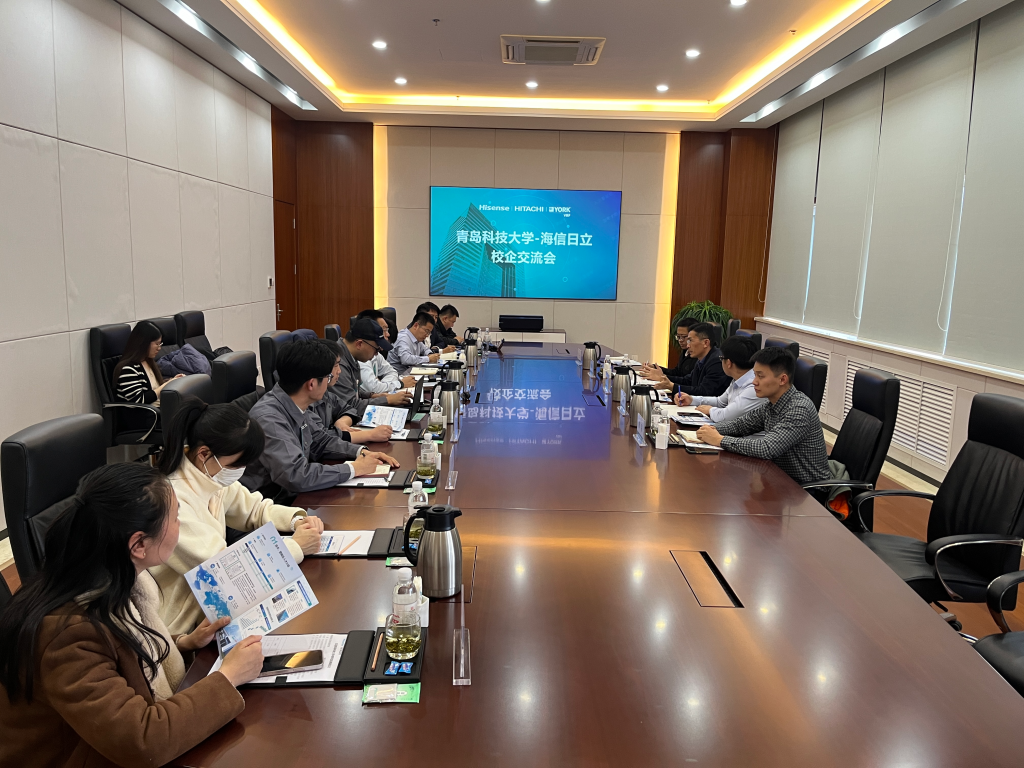 海信日立各部门负责人出席座谈交流会,客户服务部总经理曹大为代表公司对15vip太阳成集团来访表示欢迎,对15vip太阳成集团的人才培养工作给予充分肯定。肖强介绍了15vip太阳成集团学科建设、人才培养及毕业生就业情况。双方就校企共建实习实践基地、组织参观实习、举办讲座宣讲、推动合作发展等方面进行了探讨交流。