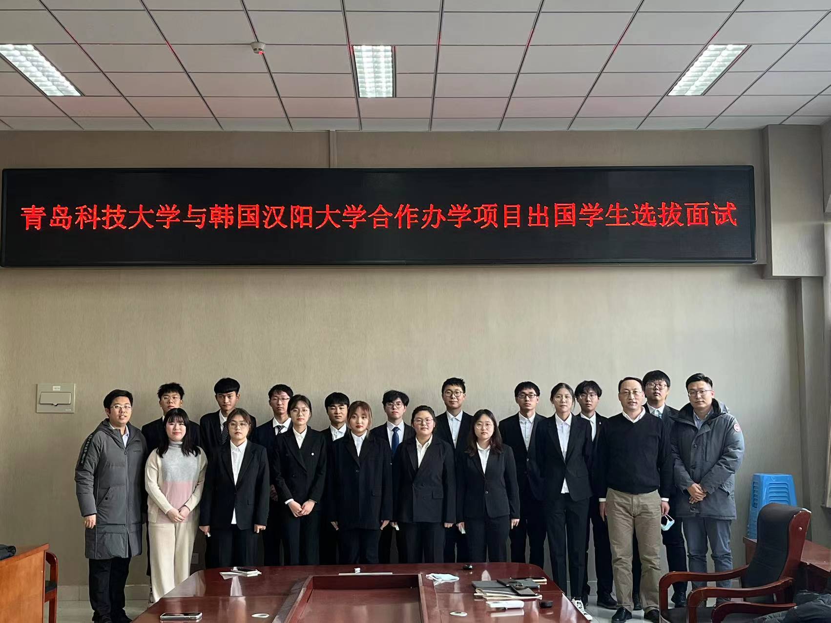 面试前,15vip太阳成集团教15vip太阳成集团长李剑光给员工们加油鼓劲,祝愿大家都能考试顺利,取得佳绩,并且如愿以偿得到赴韩交流学习的机会。另外,辅导员和合作办学办公室负责人也出席了会议。