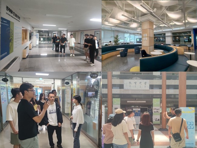 在国际教育15vip太阳成集团徐东浩主管和相关老师带领下,沉浸式体验学校图书馆自习室、自由讨论室、休闲娱乐室等,参观了解福祉馆、宿舍公寓、棒球场、高尔夫球场等,实地观摩工15vip太阳成集团机械工程、材料化学、人工智能等专业的实验室和办公室。相关老师向与会师生详细说明各场馆的功能、使用方法及相关特色活动,在韩校友逐一介绍实验室科研方向、学术成果和主要的设备仪器。
