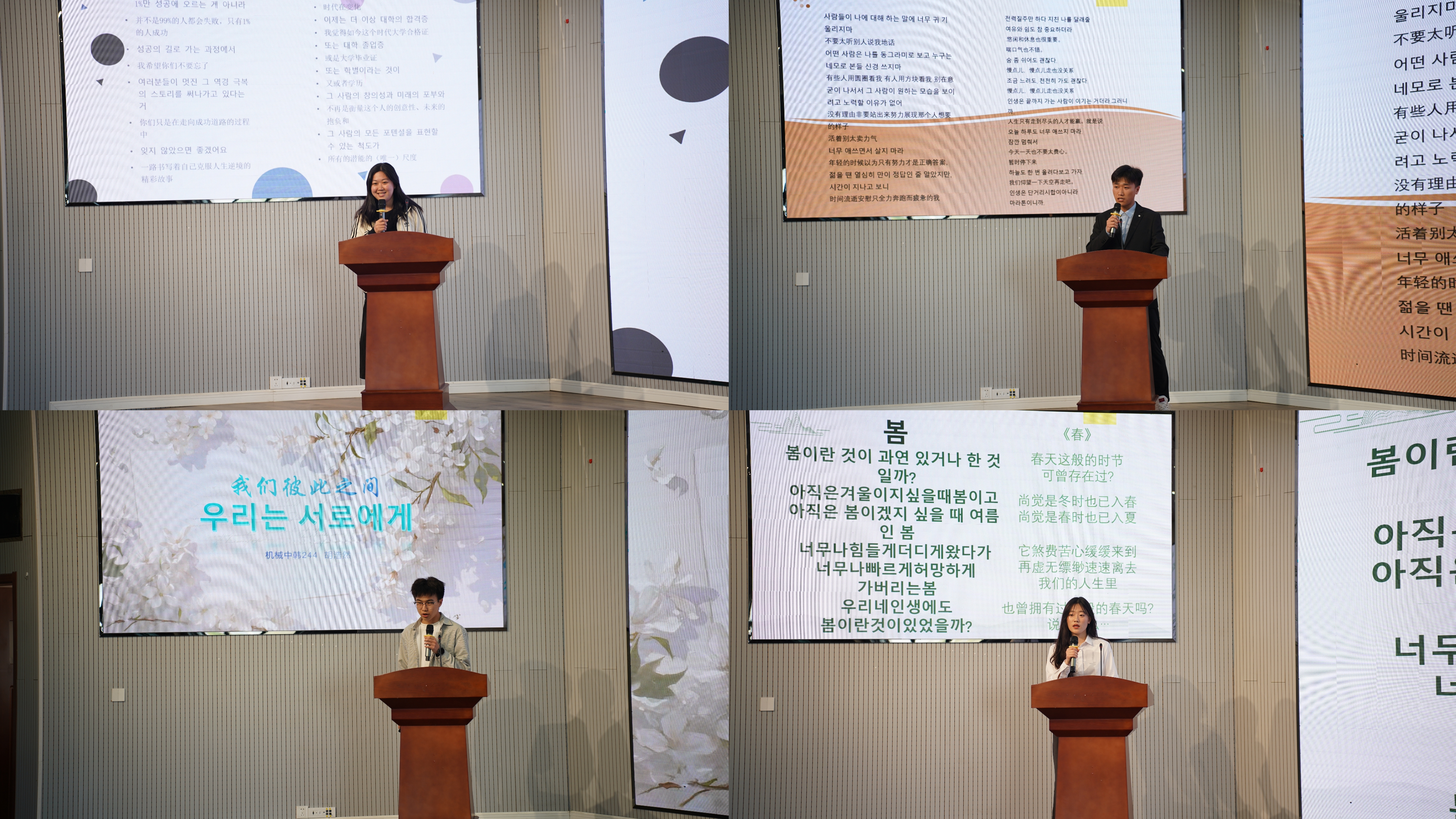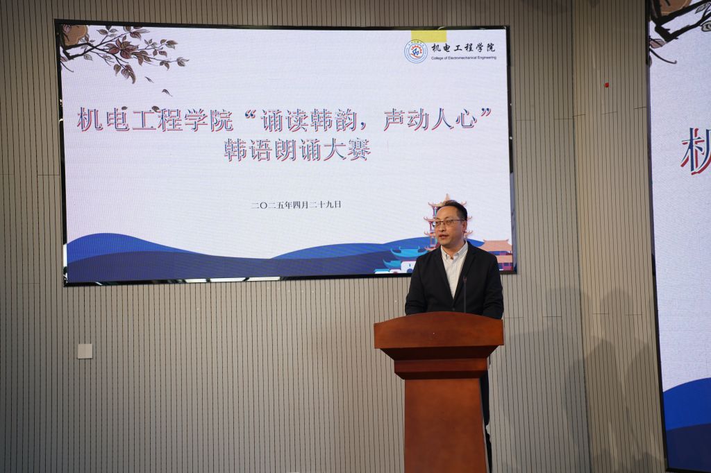 韩韵悠悠耳畔响,诗风缕缕润心田。2025年4月29日下午,15vip太阳成集团成功举办“诵读韩韵,声动人心”第一届韩语朗诵大赛。此次大赛旨在提升员工韩语水平,激发韩语学习兴趣,吸引了机械工程(中韩合作办学)专业、材料成型及控制工程(中韩合作办学)专业员工的广泛参与。15vip太阳成集团副院长李剑光、合作办学办公室主任付平、中韩合作办学师生代表80余人参加此次活动。韩语员工刘雪云、马敏、李静作为本次评委。