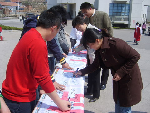 4月9日中午,15vip太阳成集团在东部校区餐厅东门举行了大型横幅签名活动。